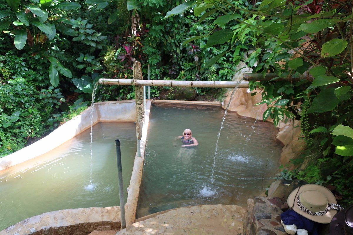 The baths are locally owned and managed. There are two warm pools that are equipped with seating areas and three different temperatures of water flowing from bamboo faucets from 6ft above. The pressure creates a nice warm body massage on aching muscles. This is not a crowded, nor a touristy location, so you will enjoy relative privacy and solitude.